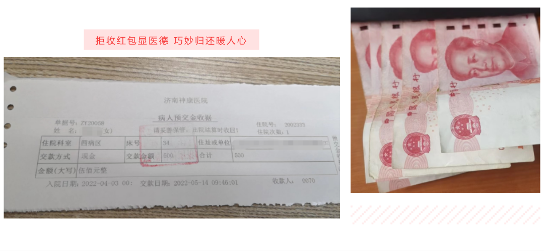 济南神康医院医生拒收红包显医德,红包冲抵住院费